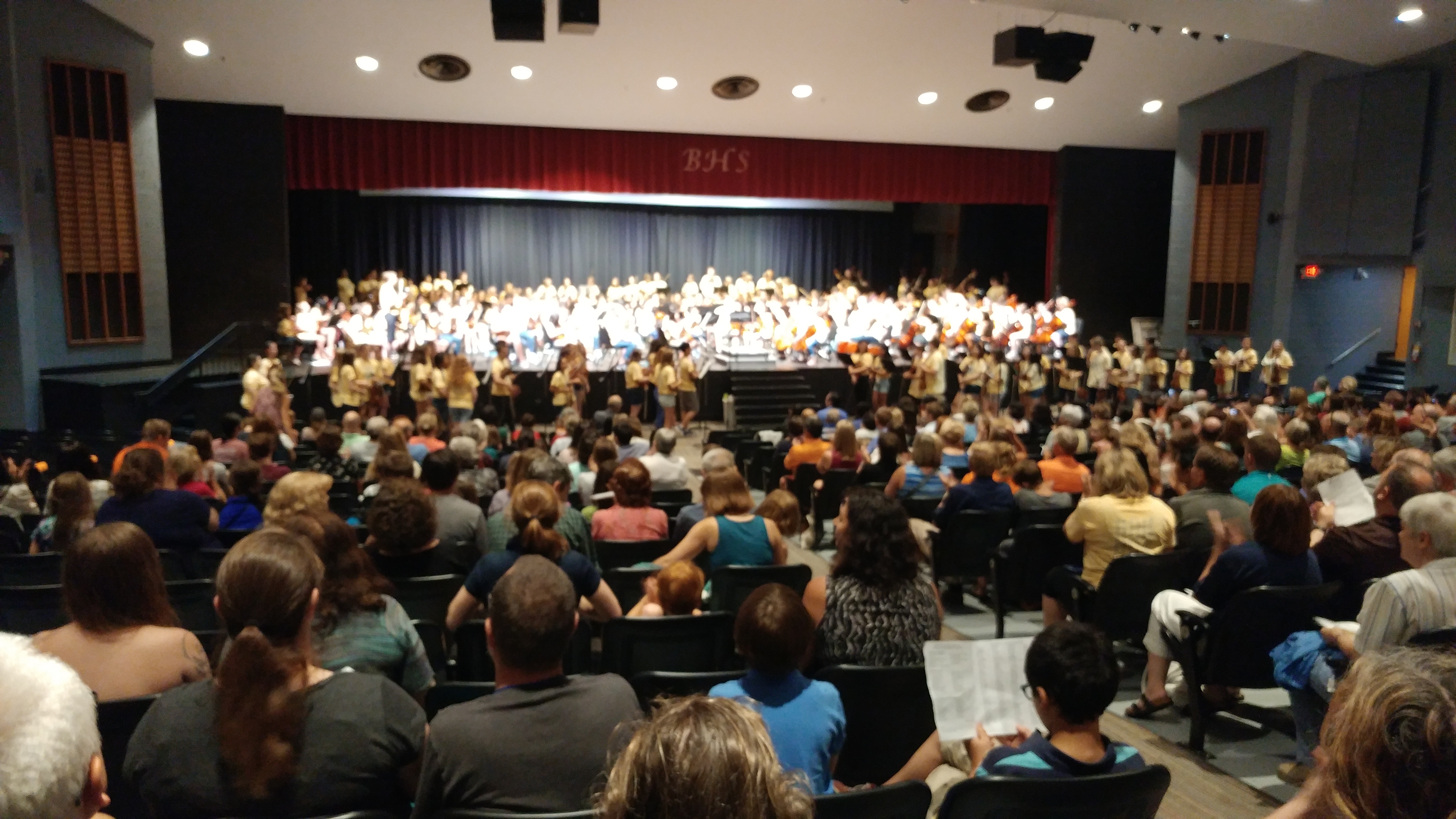 Camp tradition says that all orchestras get together on stage for Brandenburg Concerto No. 3. This year, they broke last year’s record – 262 participants on stage and spilling into the audience. Very, very happy to be a part of such an experience!