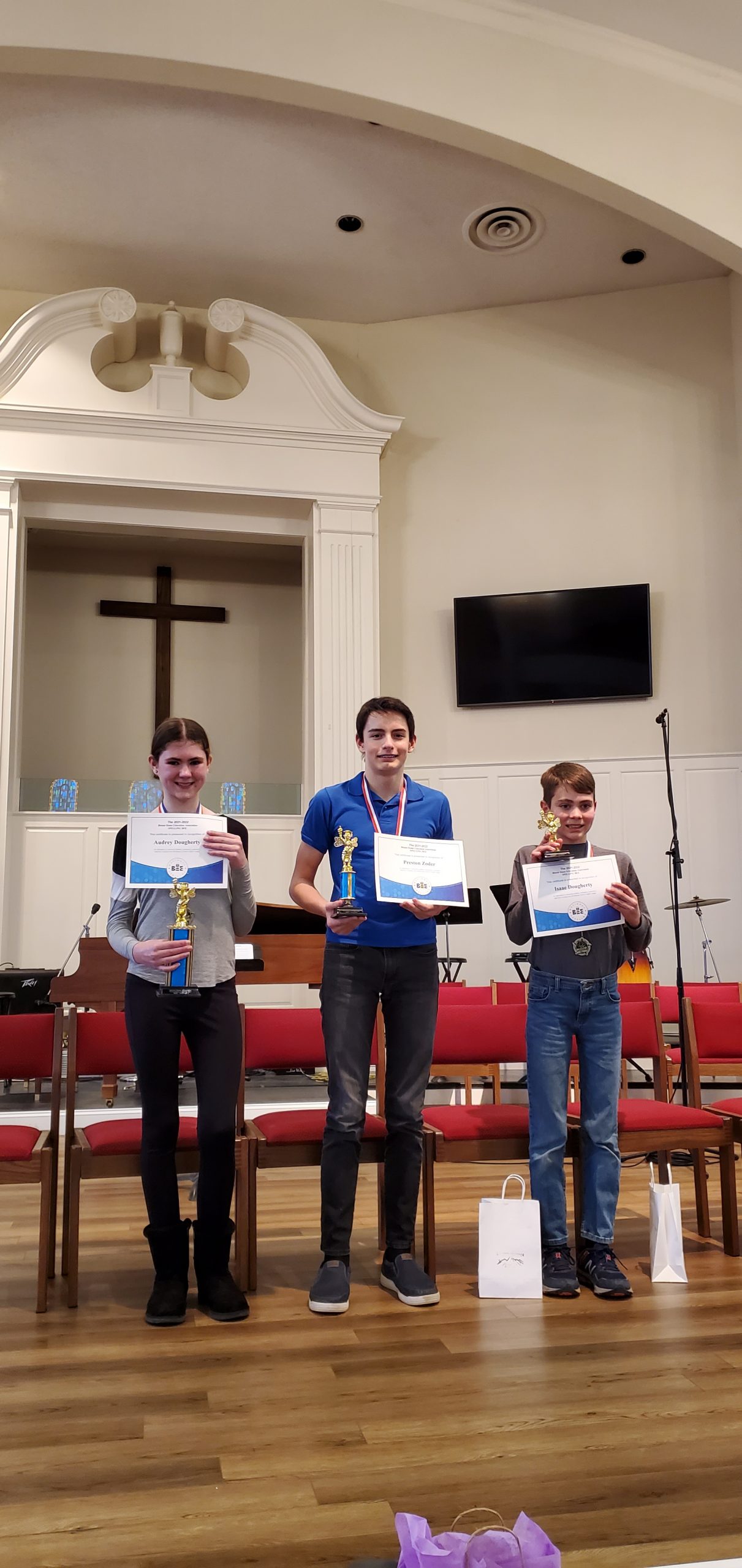 We were very glad to hear that. Spelling bees are hard enough without a mask. Having to put on and take off a mask every time you stand up to spell your word is a chore.