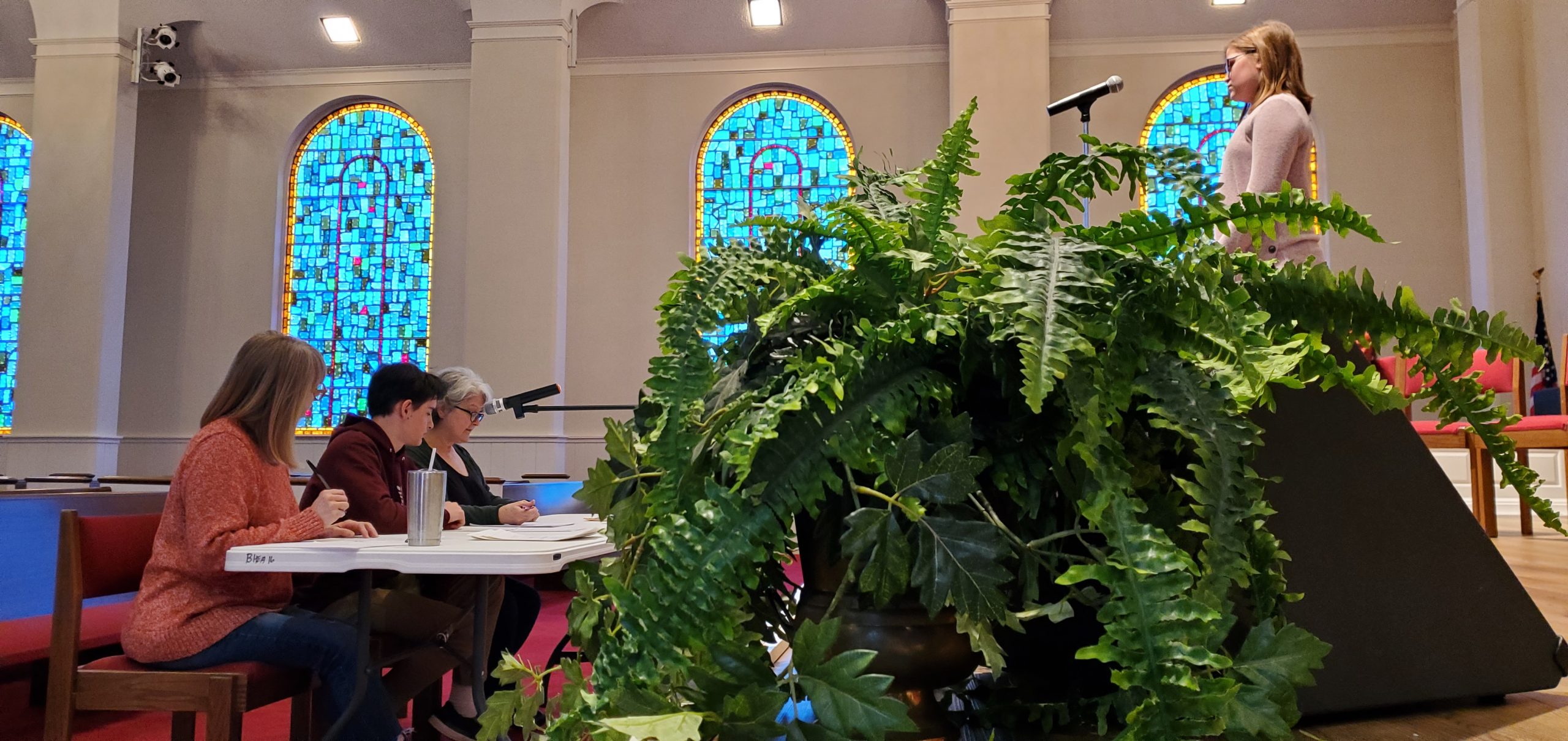 Everything went smoothly and I was not as nervous as in prior years. Our three judges were Angela Montoya (main judge, who has done it for a decade now), Preston Zoder (pronouncer, 9th grade, runner up last year, my son), and Lydia Griffin (buzzer manager, daughter of the first homeschooler of Sevier County, who is now homeschooling her own children).