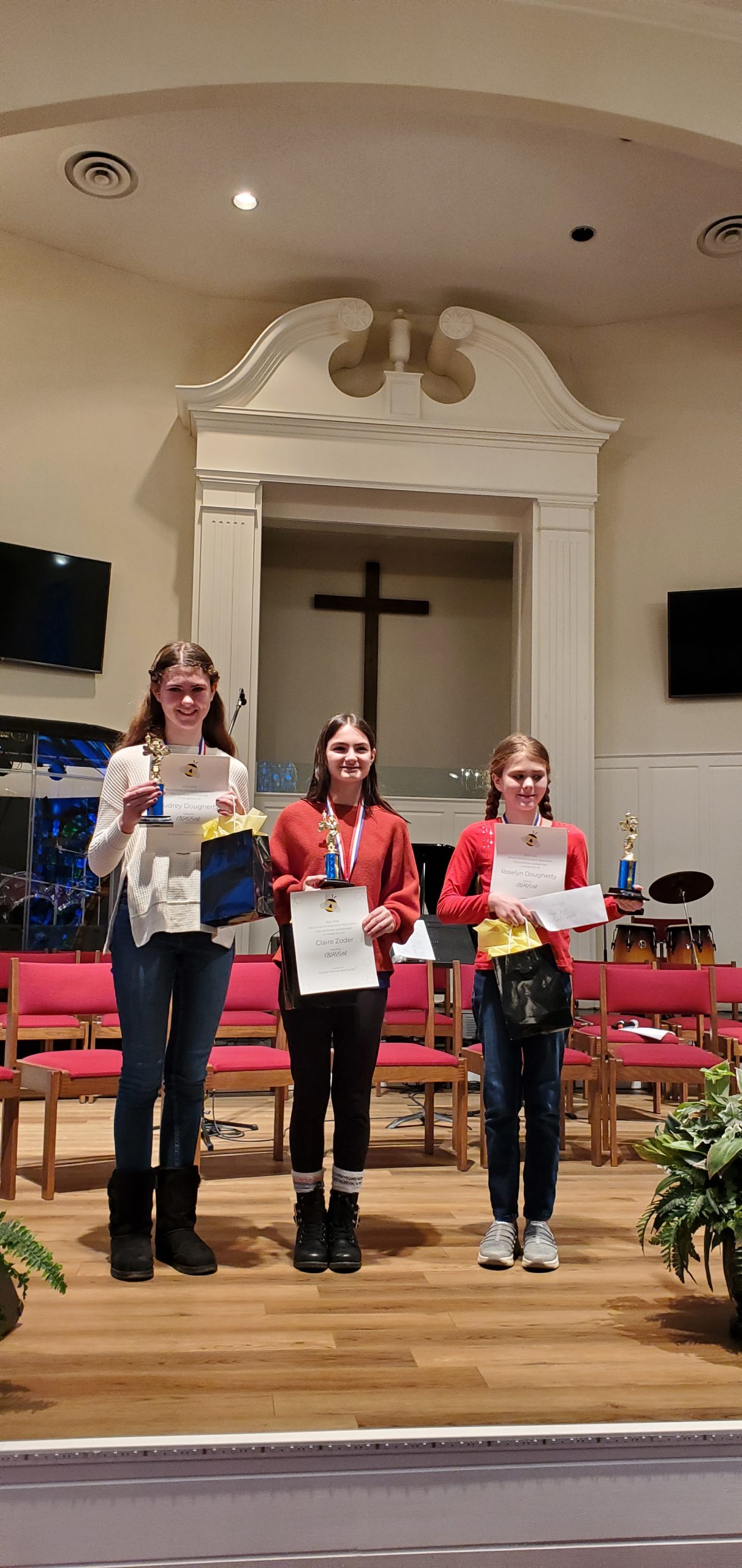 Our daughter surrendered her plans to God’s will and lifted up others who have worked hard. She knows a lot of those kids because she sees them every year doing well at the Bee. As she is currently in seventh grade, she has one more chance next year to shine and maybe win another trophy – no matter which place.