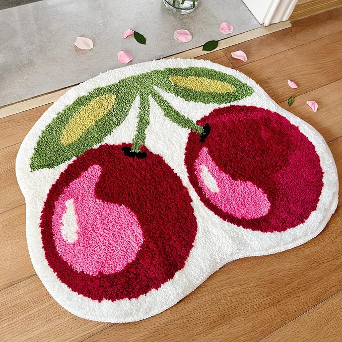 Add a pop of joy to your bathroom with this vibrant, cherry-themed bath mat. Its soft, tufted texture and non-slip backing make it both practical and delightful, perfect for a quick self-care upgrade.