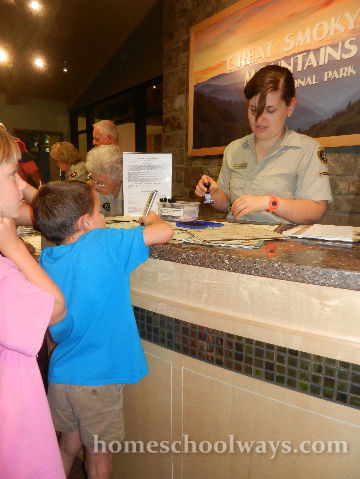 5. Take a day off. Find a reliable babysitter, if at all possible, and take an overnight trip with your husband. After all, he is the principal of the school. You two need a retreat to focus on the upcoming school year, right? Or just to forget about homeschooling entirely and relax. This year, we took our first ever overnight trip without children since we became parents. We chose Hot Springs, NC and it was a good choice. I will tell you about it in a future blog post. Here I am in front of their library. I love their sign…