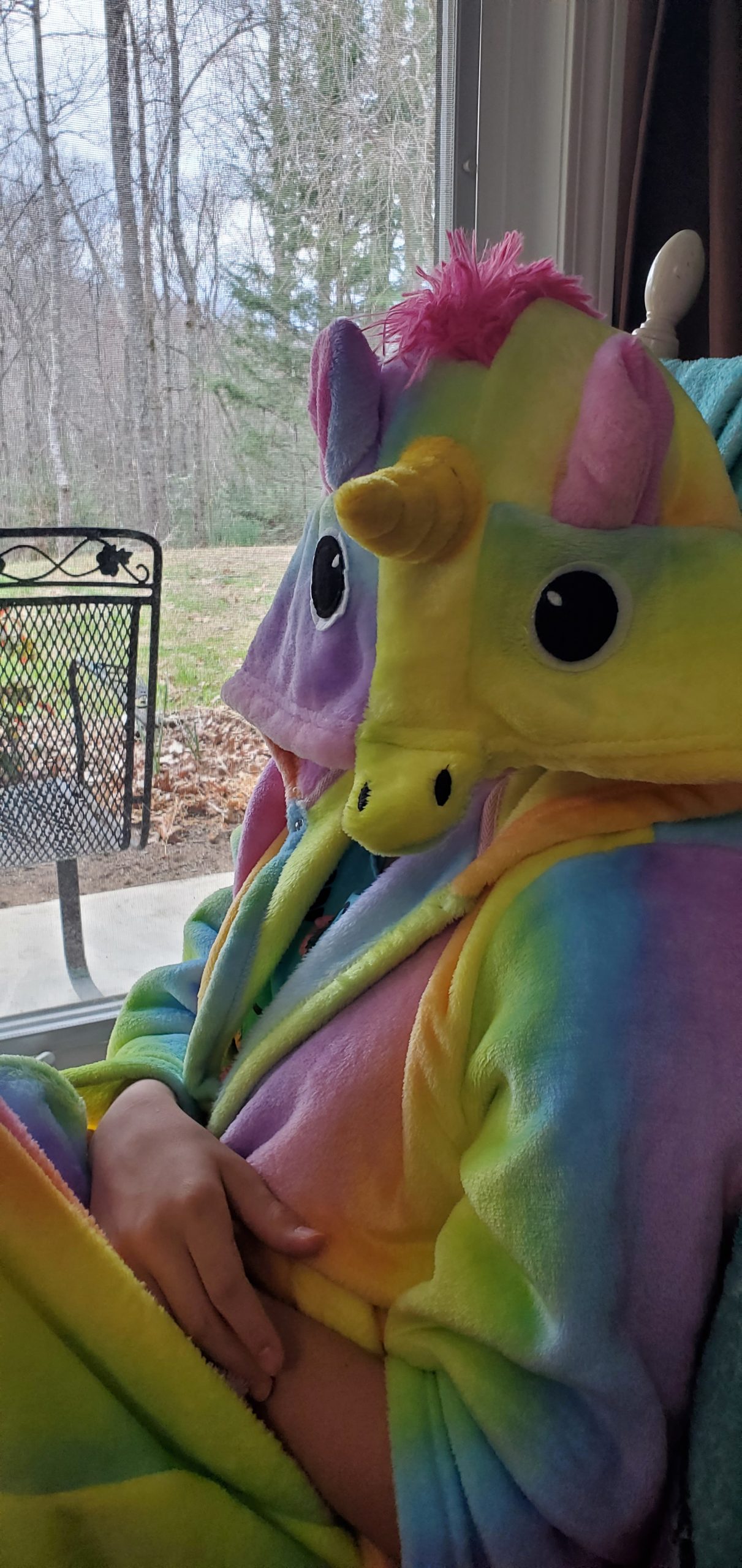 My daughter wearing her unicorn robe. I have had to adopt my teaching style to accommodate her playful nature.