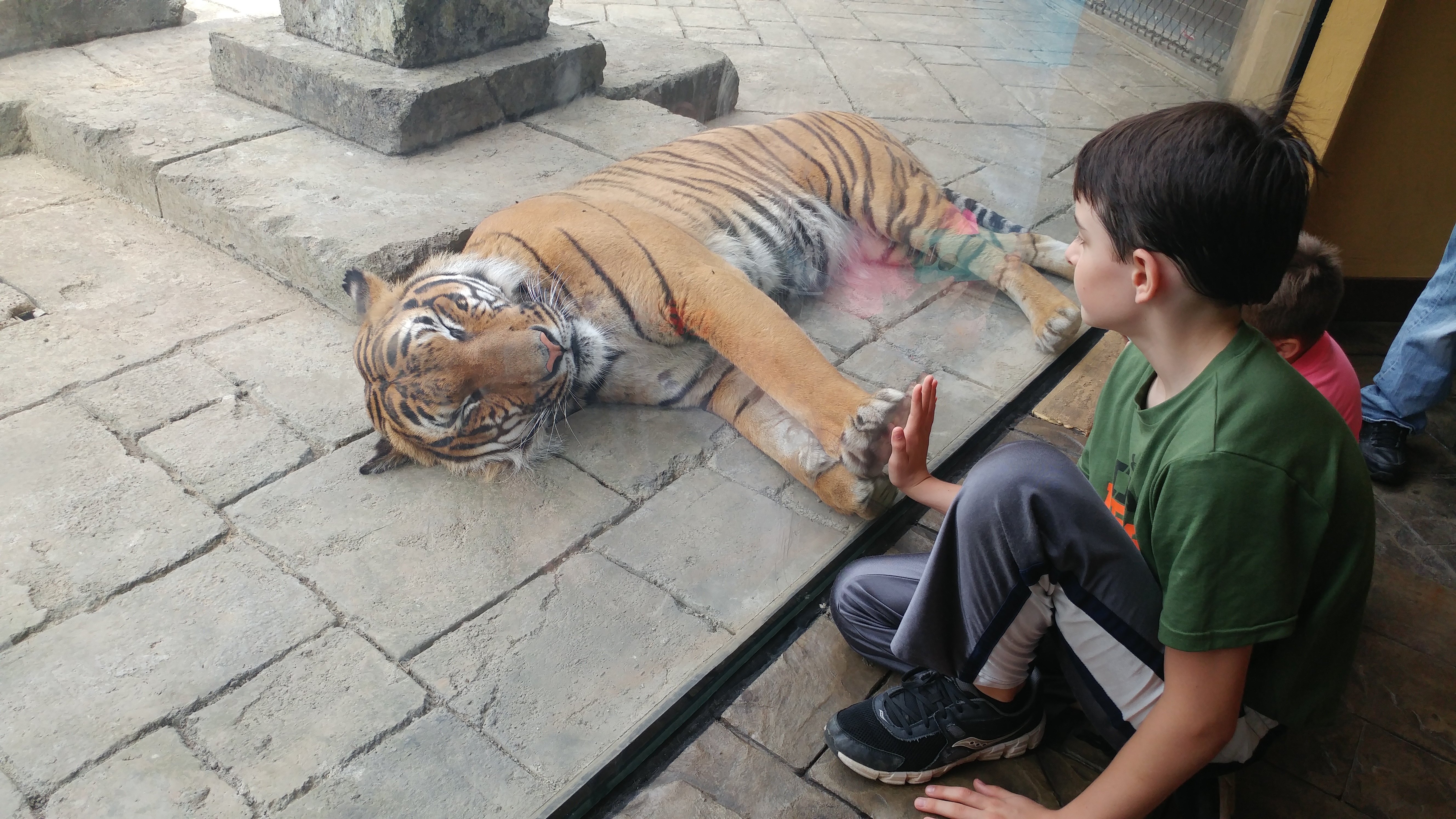 Zoo Knoxville has a new exhibit called “Asian Trek”. There are two male tigers and one female tiger, plenty of Asian decor, and a family of white-naped cranes (with a baby!). They kids saw the billboards on I-40 several months ago, advertising the tiger exhibit, so they have wanted to go for some time.