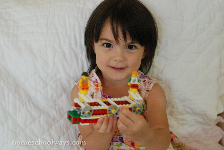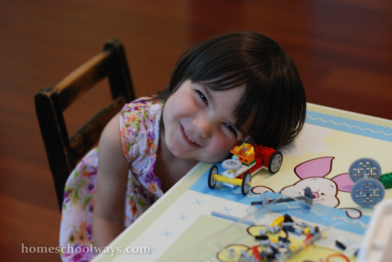 We have since bought the Simple and Motorized Machines Activity Pack for our son, so the Simple Machines set has become my daughter’s set by default. She cannot build yet all by herself, as she is only three.