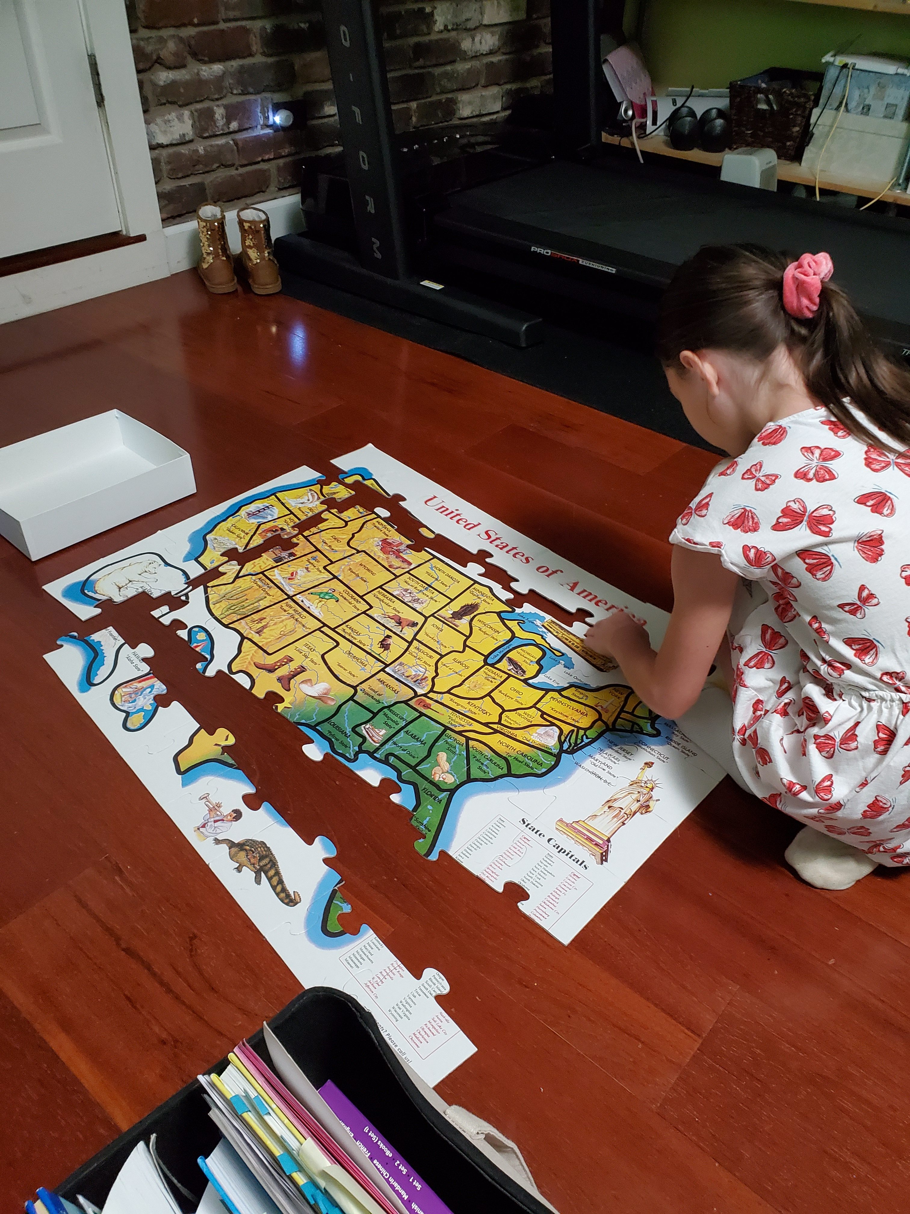 Putting together a USA puzzle helps with learning the 50 states.