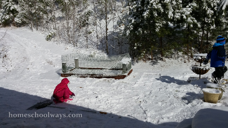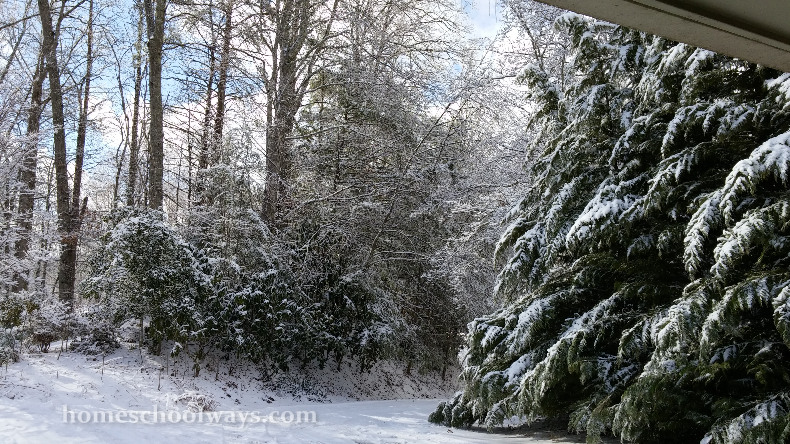 I just love how we can do school through snowy days – when our public school friends stay home from school, we are home, doing school. I know they probably get some assignments, but we continue full speed.