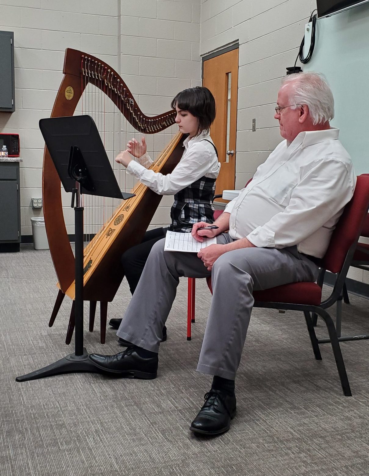 Her teacher is William Lovelace, who just received the 2023 Lifetime Achievement Award from the American Harp Society. We have been very blessed to be able to get into his studio.