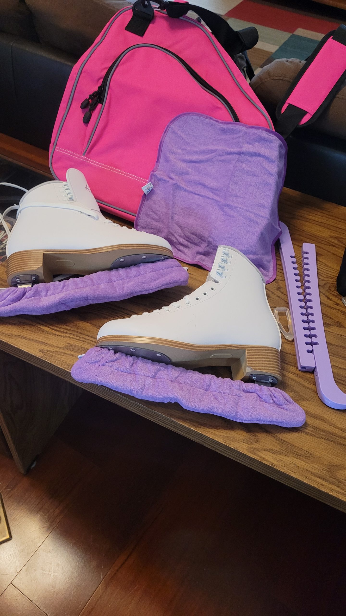 Let me tell you, the ice skating universe represents a world in and of itself. Like any other microcosm, ice skating has its own lingo and gear. We had to do a little research about how to purchase skates and what to purchase besides that. Needless to say, we had fun.