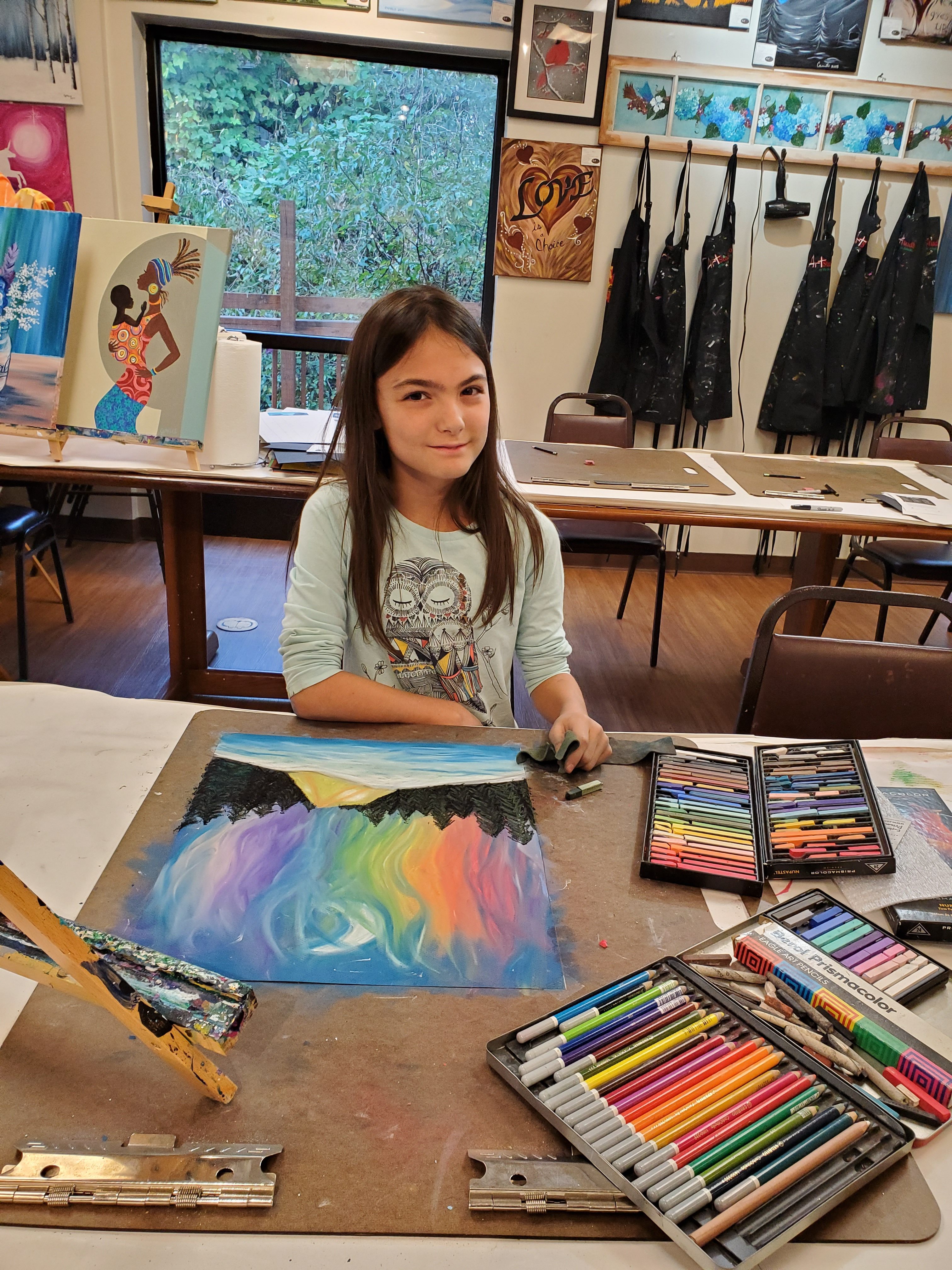 In other news, our daughter got to help her art teacher for the pastel art event. I dropped her off and went to pick her up almost five hours later. She had a lot of fun helping the ladies with their work. She also helped her teacher set up and break down the room after the clients left. You never know, this might be her future. She loves art and the idea of having her own studio, teaching others.
