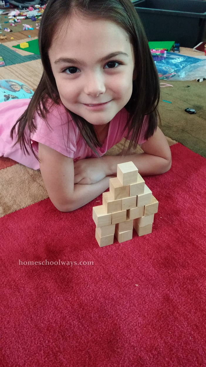 So now that I have bored you with my philosophy of education, let me get back to the subject matter: math manipulatives. We pulled out different sets of tiles and blocks and let the first grader go to town with them. They got stacked and rearranged in different ways according to her fancy. My third grader joined in because it looked like so much fun. It was therapeutic for everybody.