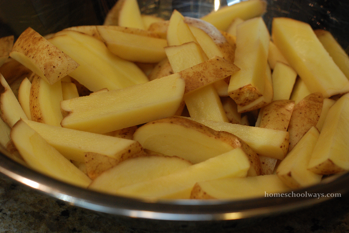 Besides, oven fries are very quickly washed, cut up, and tossed with oil and condiments, while the oven is pre-heating. It is an easy food to make and a healthy side dish to any entree.