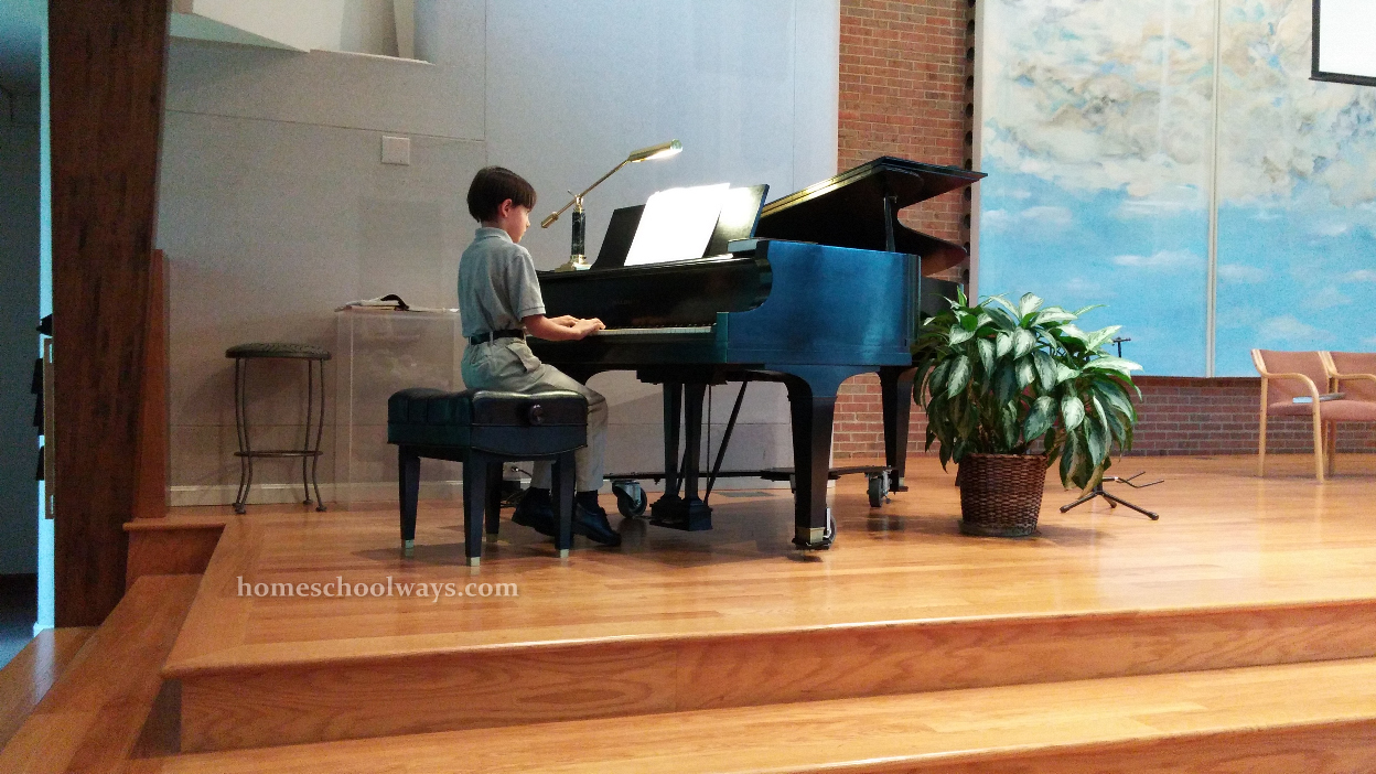 The latest song he played for special music on the piano is Jesus Loves Me. This arrangement is way below my son’s piano level right now, but we chose it so that we can get over the nerves. He wants to do special music, but he gets nervous every time. I figured it would help if he had to play something easier. A lot of performing has to do with mental toughness. And he is still a small boy.