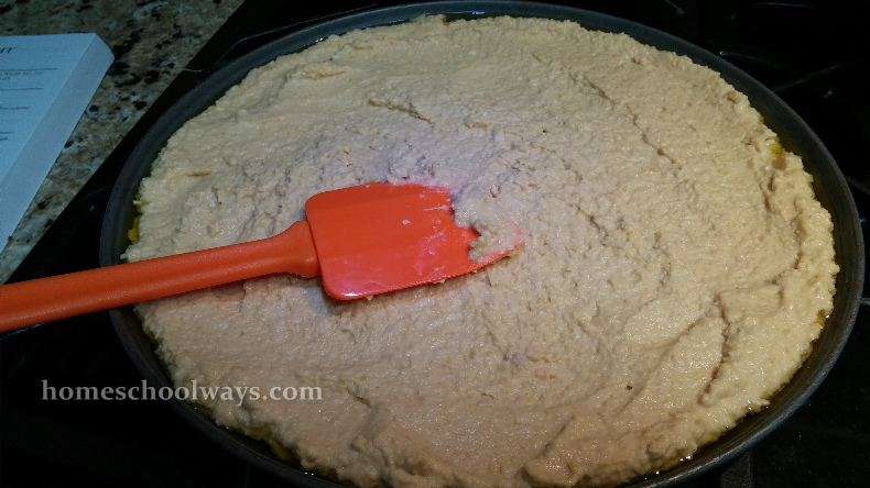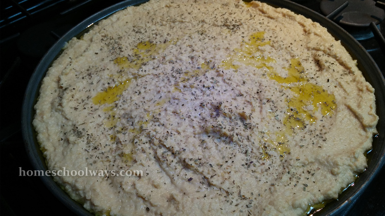 We made fasces and cecina. The kids liked cecina up to a point. It has an aftertaste, maybe because of the liquid in the can. If I make it again, I would rinse the chickpeas and use regular water. I was surprised that you can actually serve it out as a pizza slice.