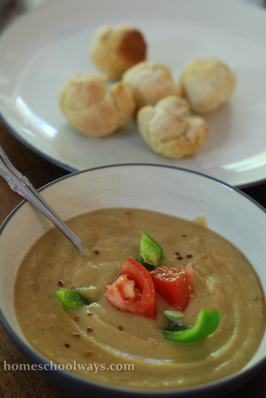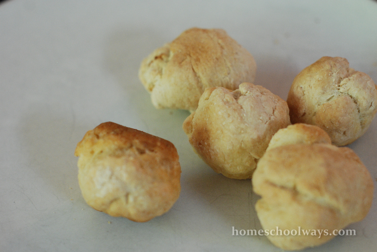 From this same book, we made sebetu rolls. My daughter is four and she loved mixing the ingredients until the dough got too firm for her. We enjoyed them with cream of vegetable soup. Very chewy! They got hard the next day, but I microwaved them for 30 seconds and they got all soft and warm. Perfect comfort food for fall days!