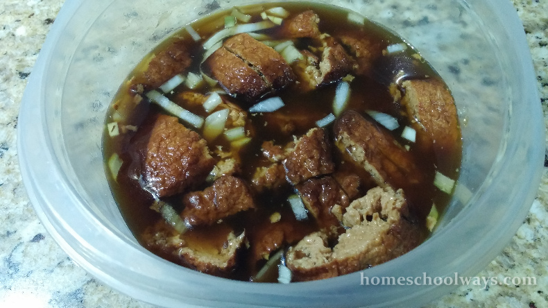 But they all ate everything else. It was raining hard when I decided to fire up the grill and make my vegetarian “beef” teriyaki, but I was determined to get it done. It really was not that bad, but I don’t think I will make this sauce any time soon. They ate it, but they were not over the moon with it.