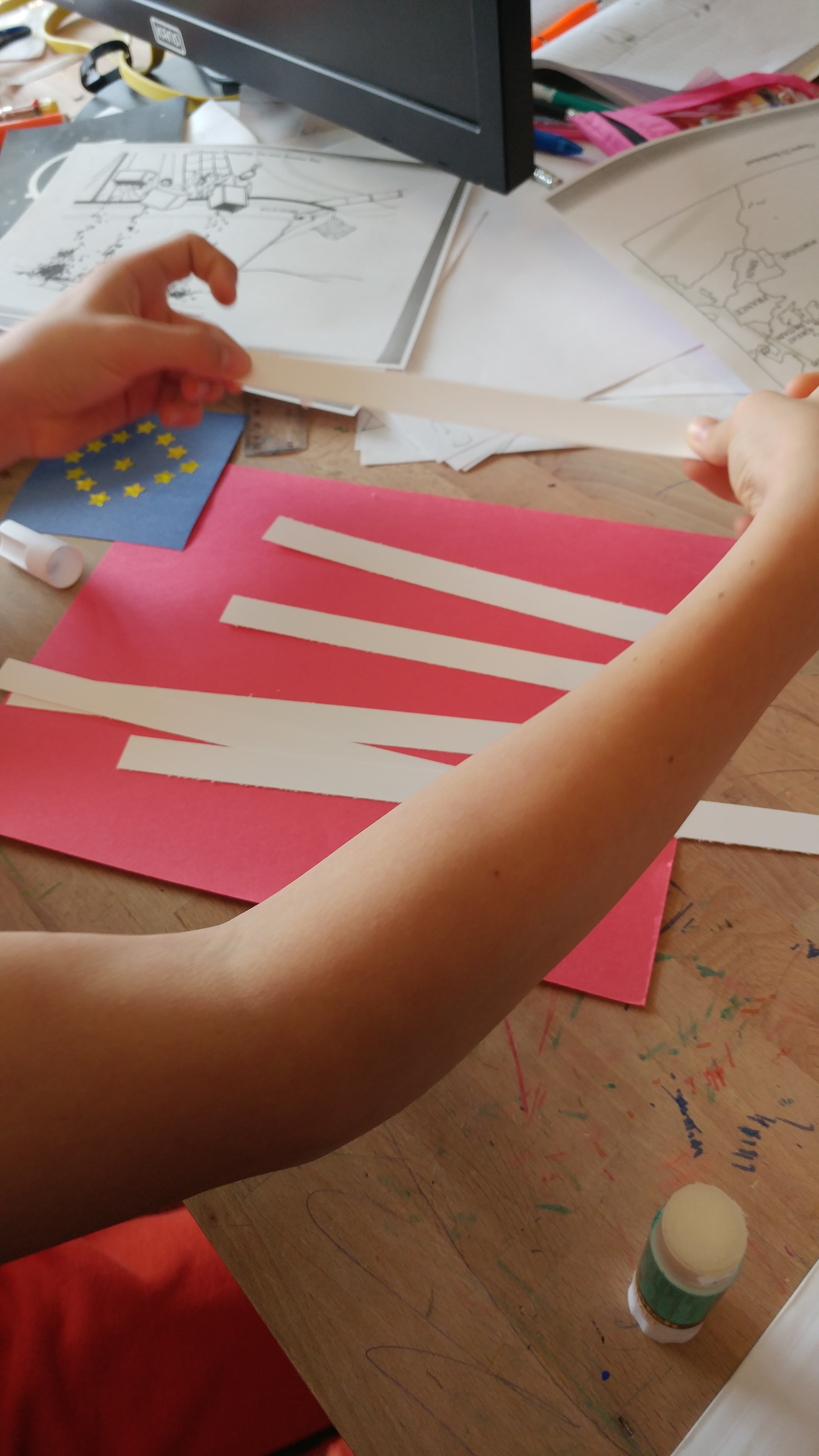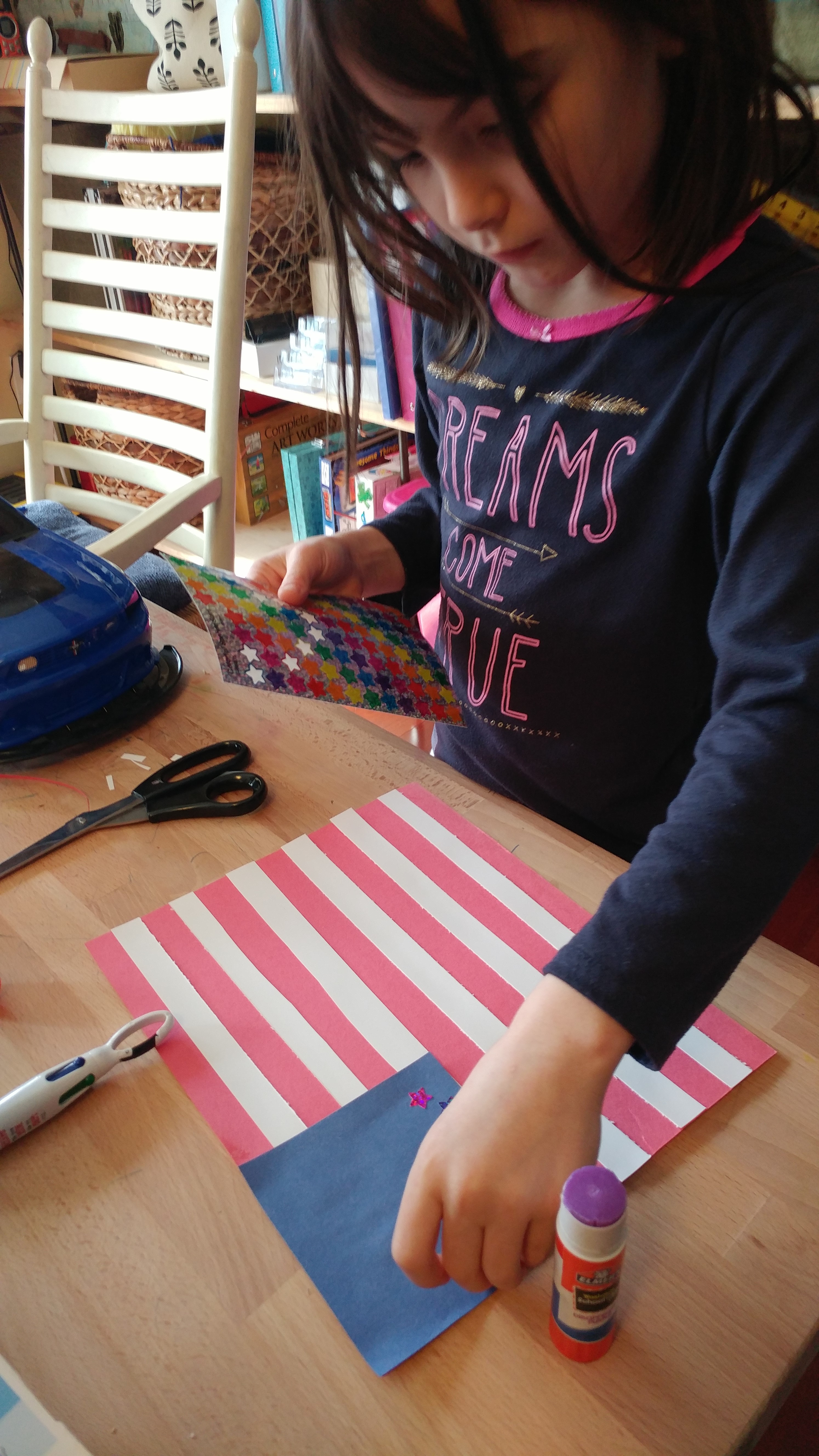 Instead, I gave them some of my sticker stars, which I use to reward their good paperwork. My daughter chose pink and purple stars, while my son worked with gold stars. Not exactly historically accurate, but they had fun and got a bit of artistic endeavor in for the day. Plus, they were proud of their flags.