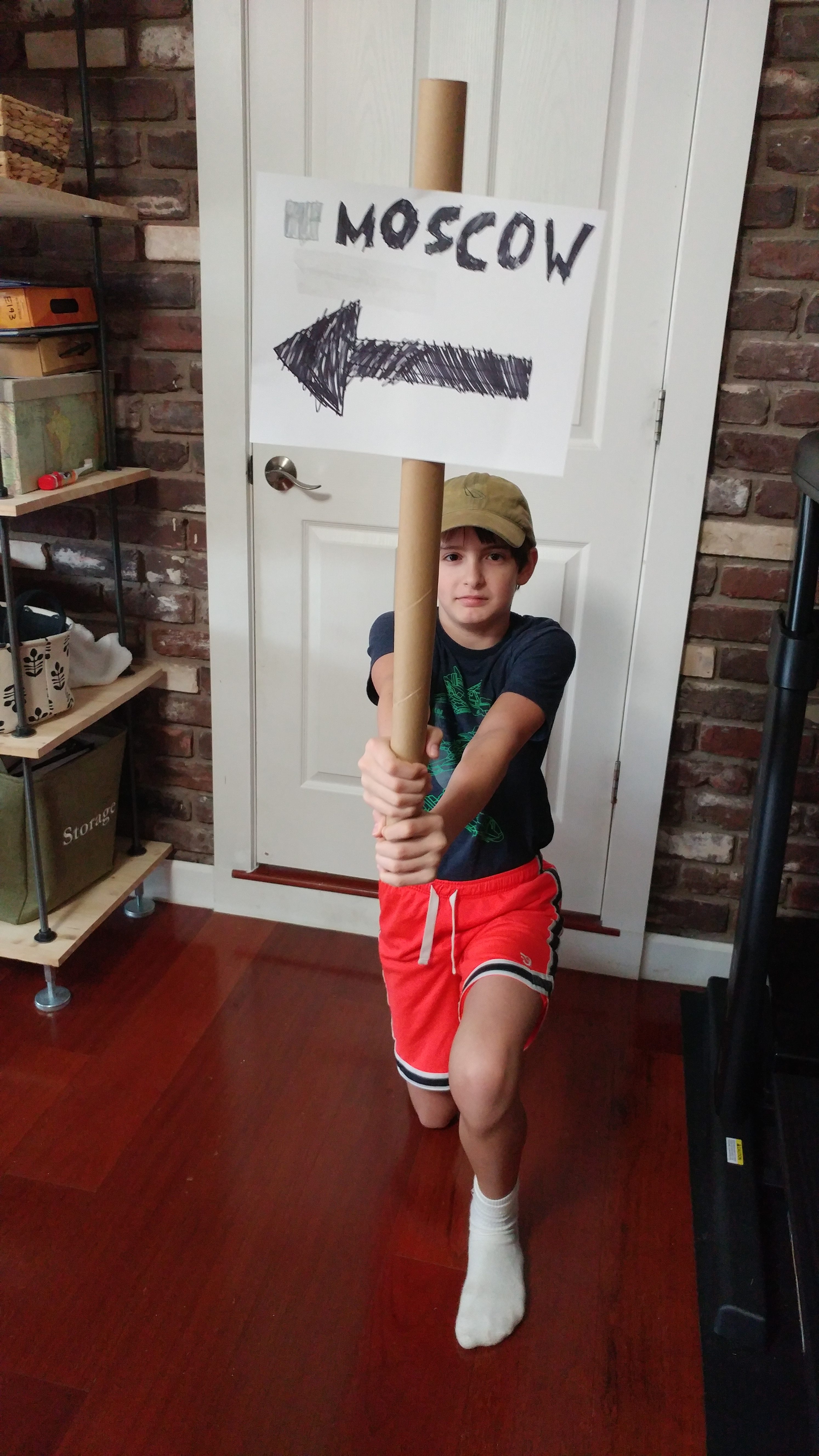 For our activity project, we chose “This Way to Moscow.” I hid a toy outside the home and they had to find it. They made signs that read “To Moscow.” Surprisingly, they loved doing looking for the toy. I got tired of the game after a bit but they wanted to keep going. So they hid the toy from each other for another 30 minutes after I went inside the house.