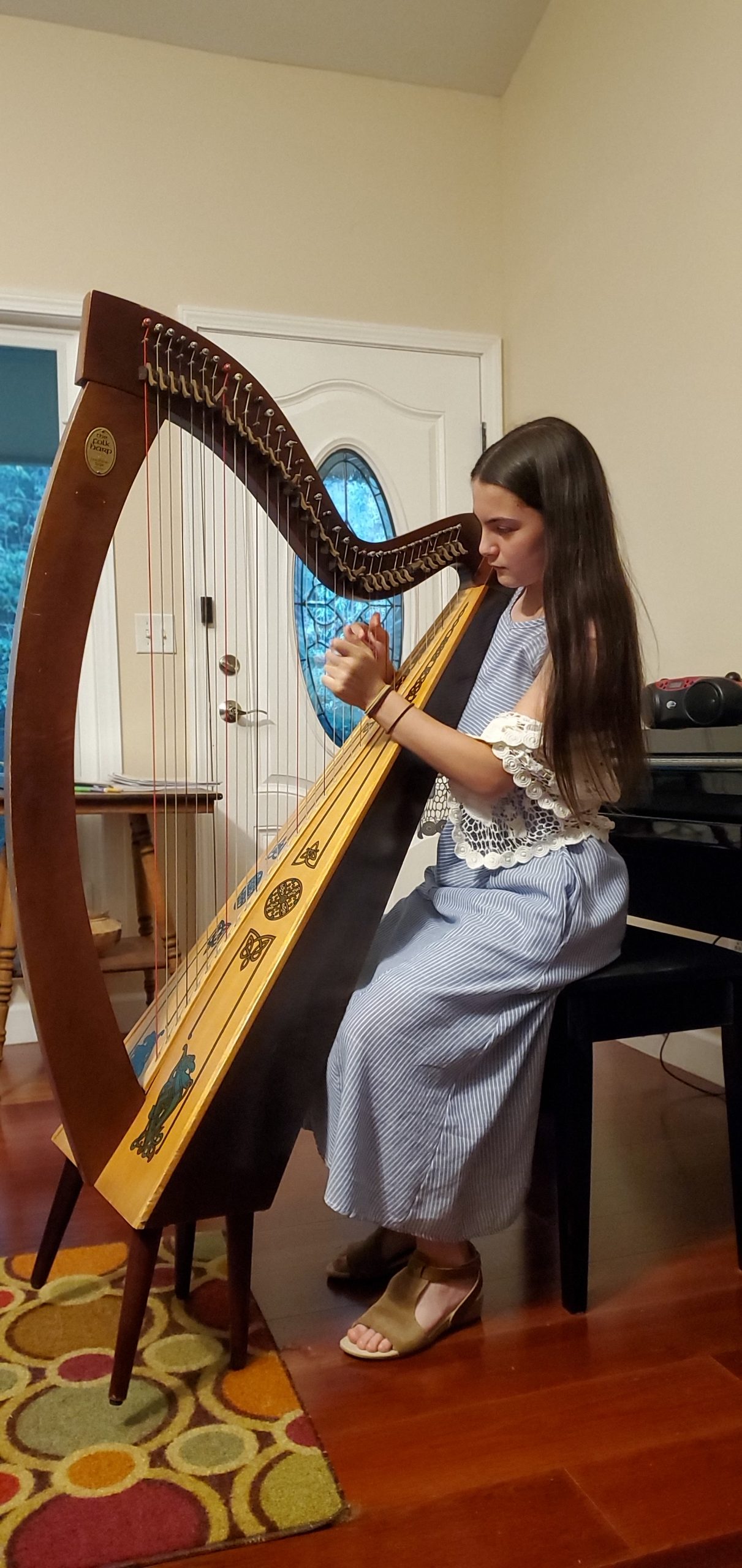 Our daughter practicing the folk harp at home