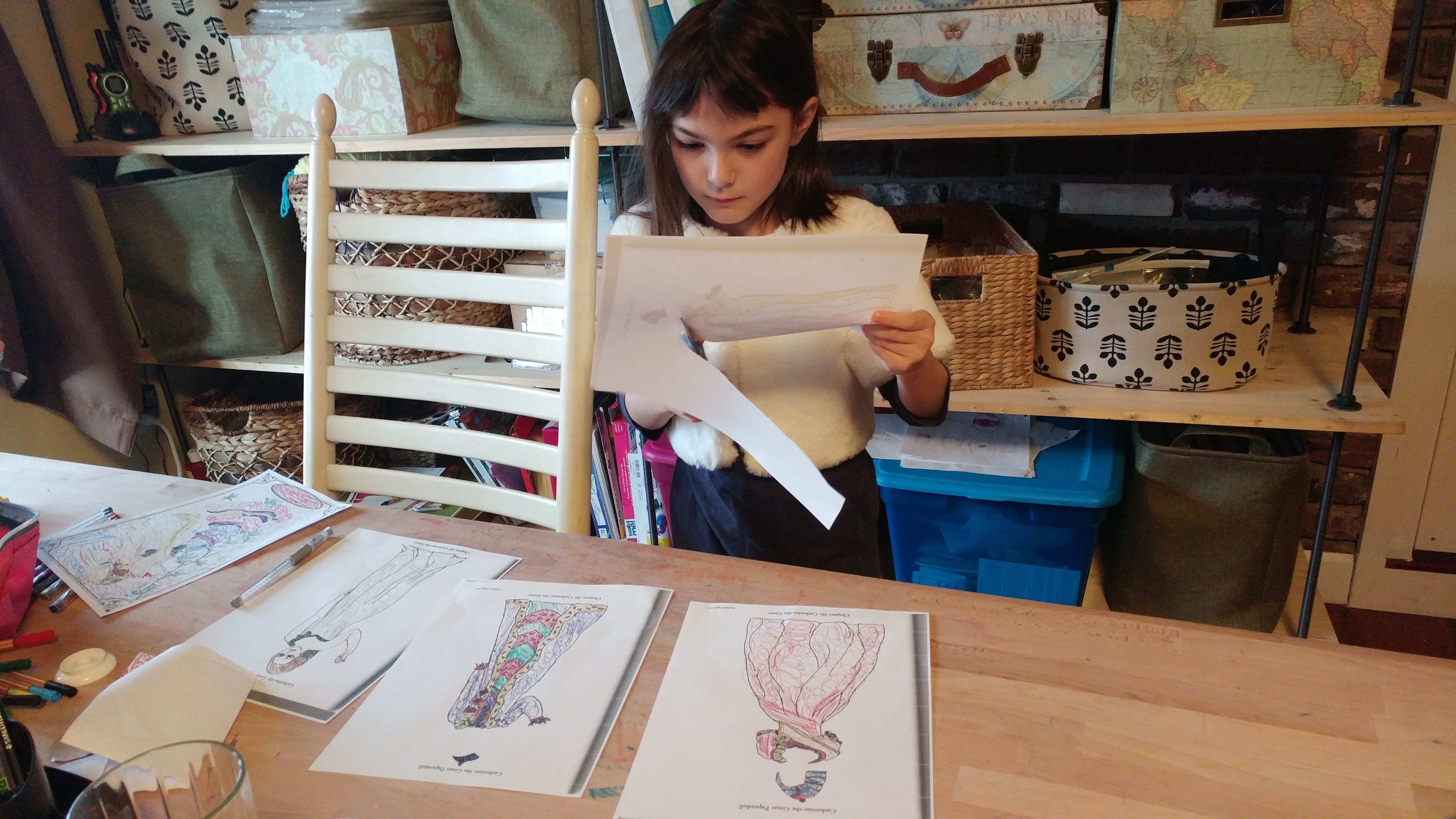 Chapter 26 in Volume 3 took us to Russia. Catherine the Great made a big impression on my daughter. Of course, the paper dolls were a hit. She decorated every single one and made sure she could stick and remove them with Velcro dots.
