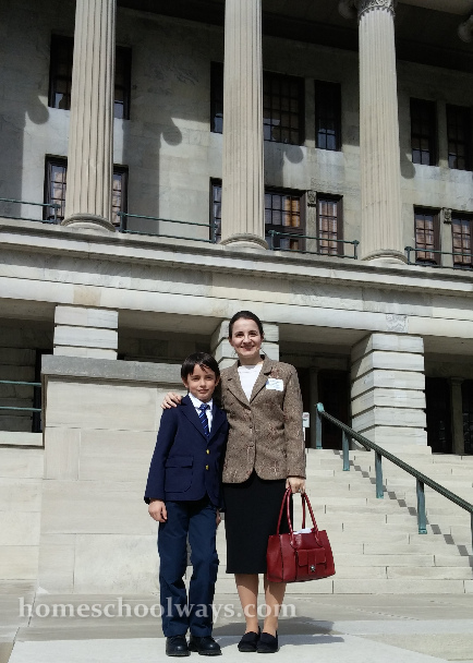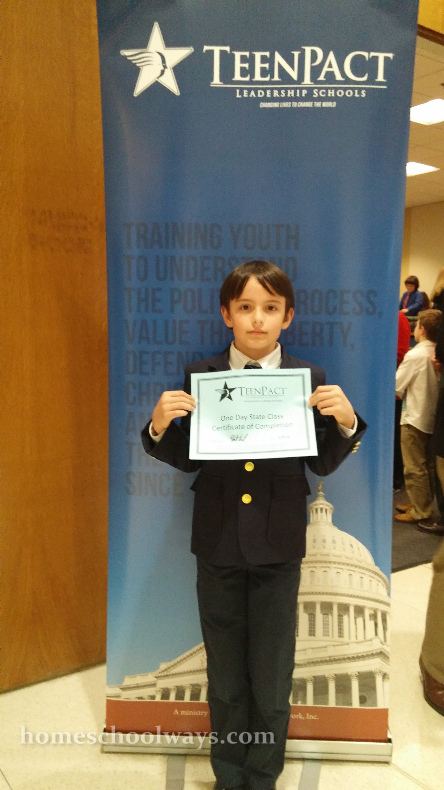 My son’s schedule looked like this: introduction of staff, worship, sword drill (they looked up Bible verses about how God sets up kings and takes them down, and we are to submit to worldly authority), how the government works, prayer walk (tour of the Capitol with a scavenger hunt and a couple of places where we stopped to pray for our law makers), and lunch. After lunch, they had a seminar about public speaking and one about how a bill becomes a law. At the very end, they had a brief commencement ceremony during which the children walked up front, shook everybody’s hand, and received their certificate.
